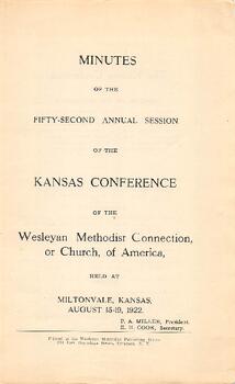 Minutes of the Fifty-Second Annual Session of the Kansas Conference of the Wesleyan Methodist Connection (or Church) of America Held at Miltonvale, Kansas August 15-19, 1922.