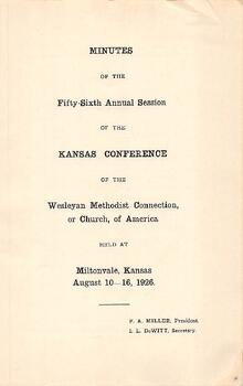 Minutes of the Fifty-Sixth Annual Session of the Kansas Conference of the Wesleyan Methodist Connection (or Church) of America Held at Miltonvale, Kansas August 10-16, 1926.