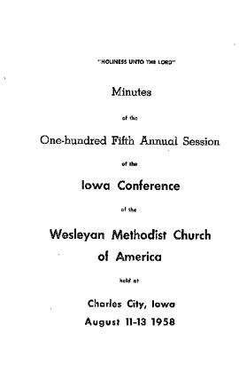 Minutes of the One-Hundredth Fifth Annual Session of the Iowa Conference of the Wesleyan Methodist Church of America Held at Charles City, Iowa, August 11-13, 1958.