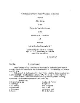 Tenth Session of the Rochester Annual Conference. Record of the doings of the Rochester Yearly Conference of the Wesleyan Methodist Connection of America held at Royalton, Niagara County, New York. Commencing its Session on Thursday, April 27th, 1854, and closing its Sessions April 30th in the evening.